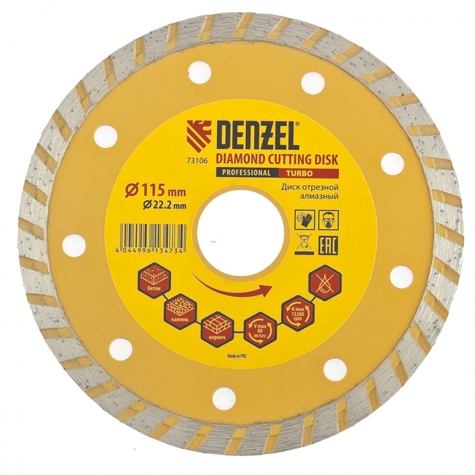 Алмазный диск 115х22,2х2,4мм DENZEL TURBO сухой рез, камень, кирпич, армированный бетон 73106