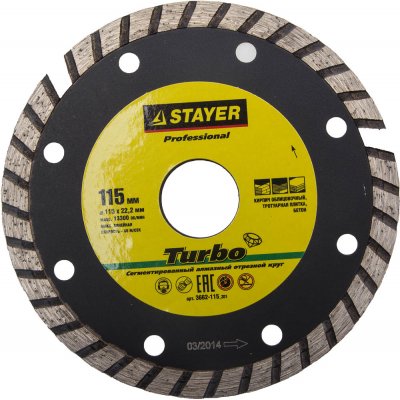 Алмазный диск 115х22,2мм STAYER "PROFESSIONAL" TURBO, сегментированный, сухая и влажная резка 3662-115_z01