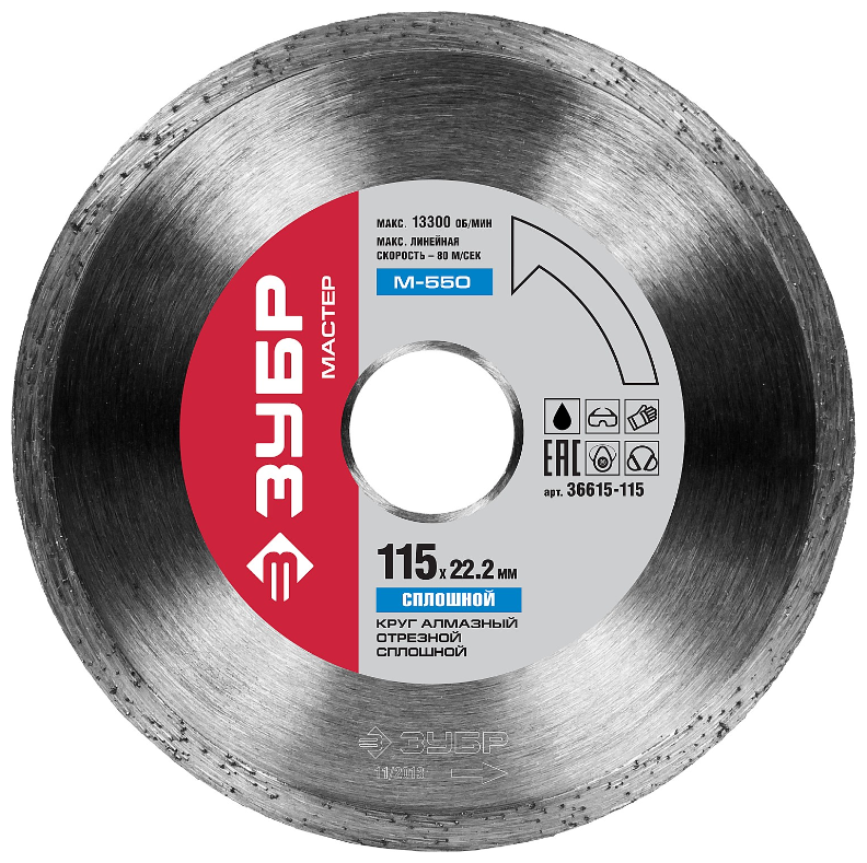 Алмазный диск 115х22,2мм ЗУБР "МАСТЕР" сплошной, влажная резка 36615-115