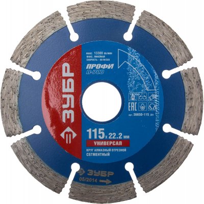Алмазный диск 115х22,2мм ЗУБР "ПРОФИ" УНИВЕРСАЛ сегментный, сухая резка 36650-115_z01