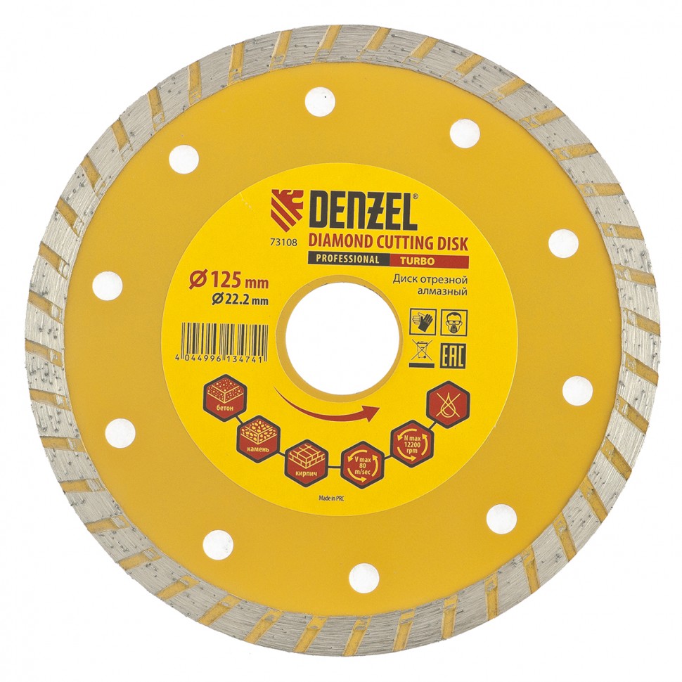 Алмазный диск 125х22,2х2,4мм DENZEL TURBO сухой рез, камень, кирпич, армированный бетон 73108