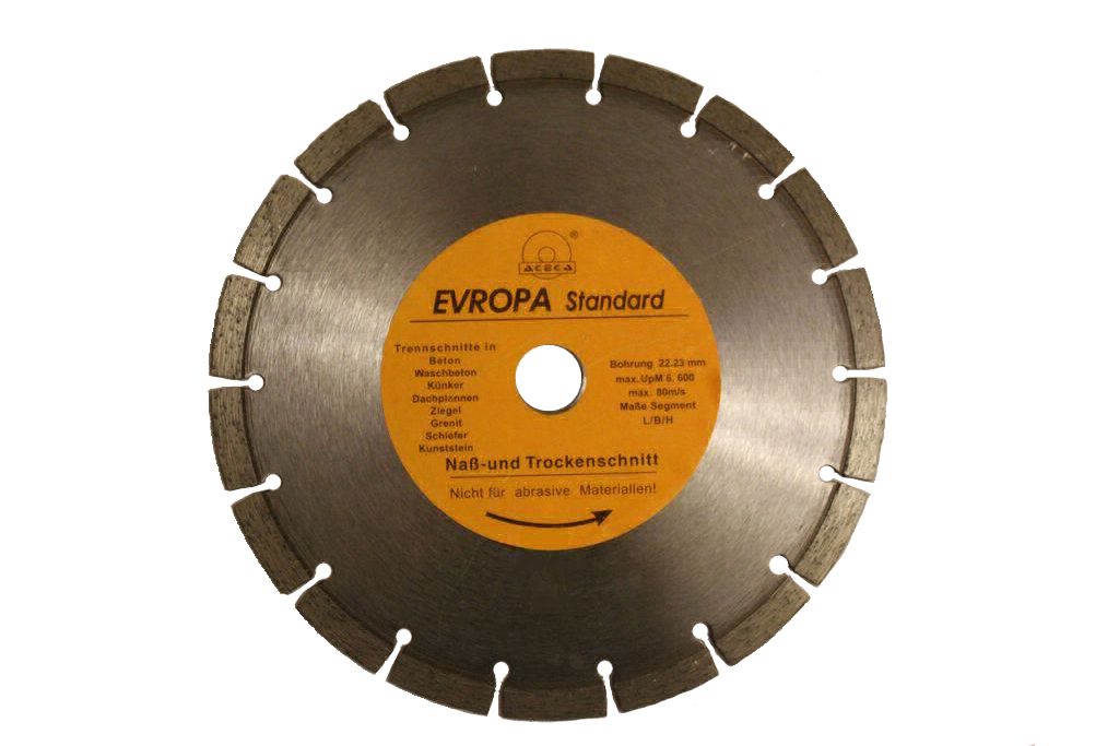 Алмазный диск сегментированый, для широкого спектра строительных работ. Разделение режущей поверхности на сегменты дает возможность отводить отработанный материал и способствует дополнительному охлаждению, повышая производительность.