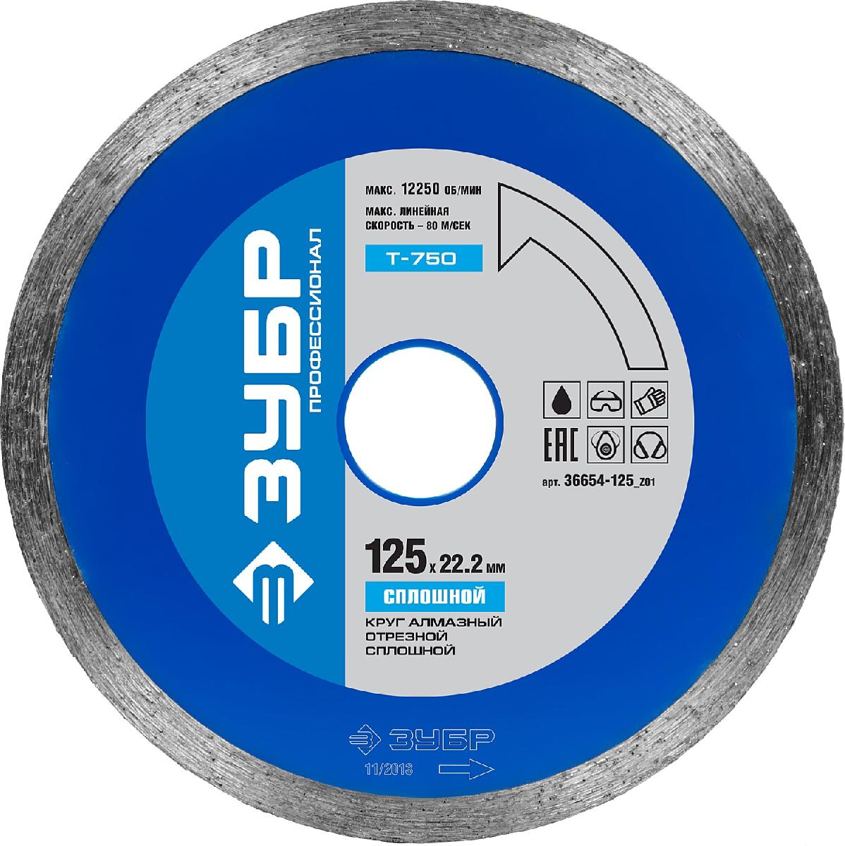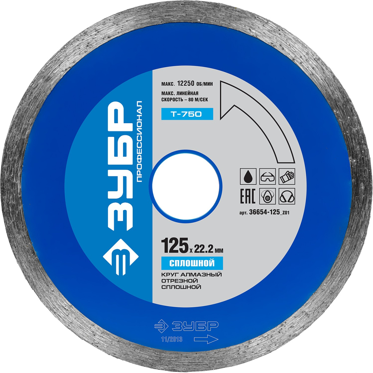 Алмазный диск 125х22,2мм ЗУБР "ПРОФИ" сплошной, влажная резка 36654-125_z01