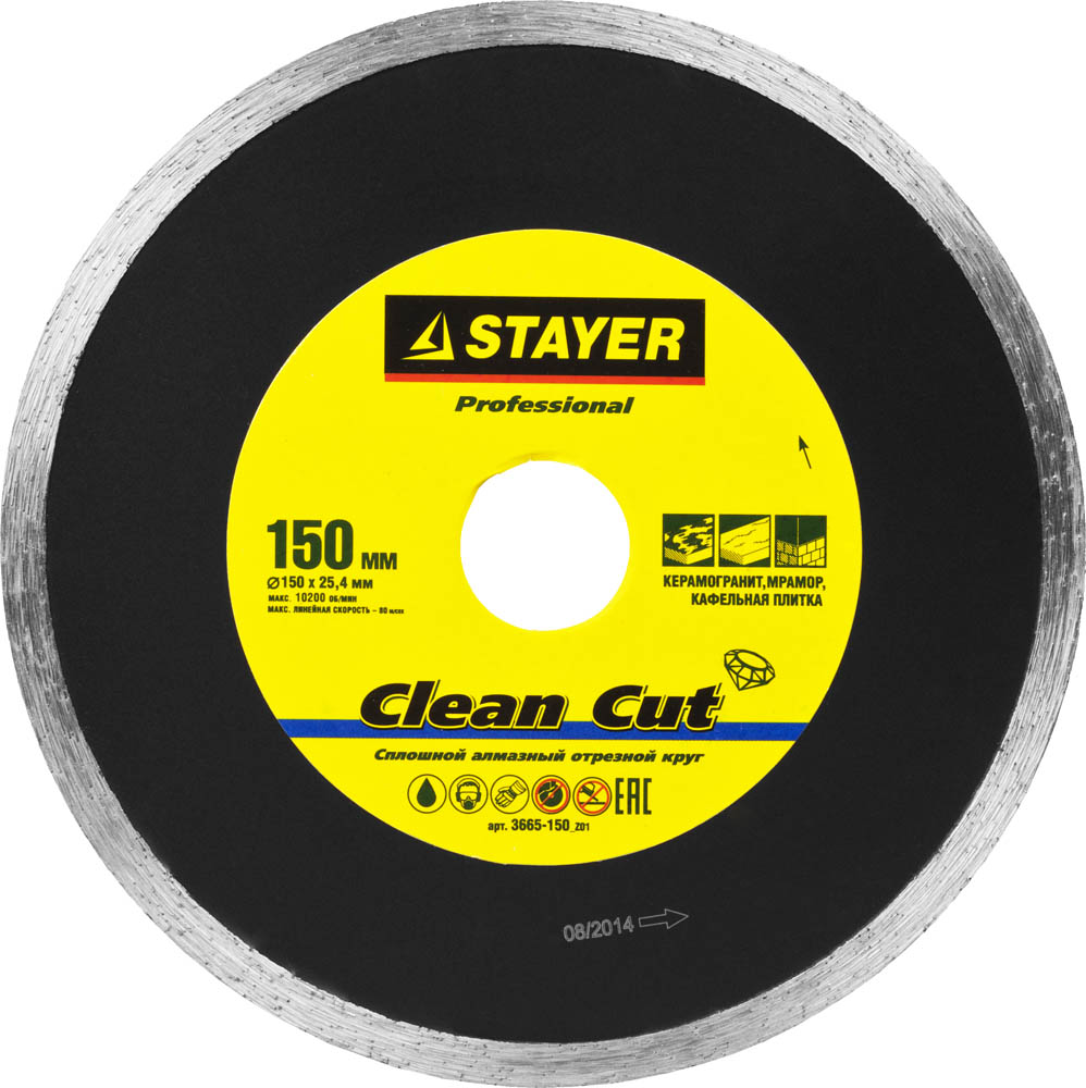 Алмазный диск 150х25,4мм STAYER "PROFESSIONAL", сплошной, влажная резка, для электроплиткореза 3665-150_z01
