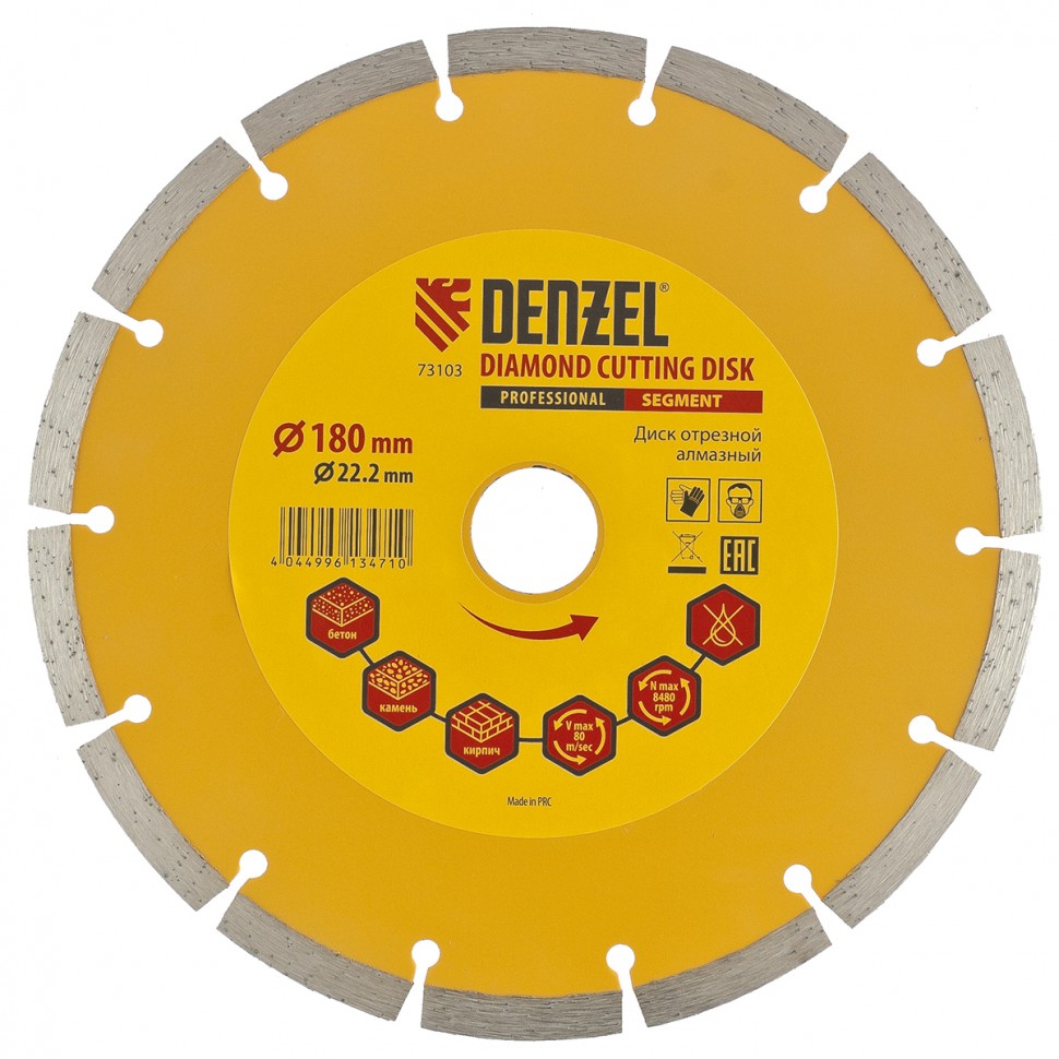 Алмазный диск 180х22,2х2,0мм DENZEL сегмент, для резки камня, кирпича, бетона. 73103