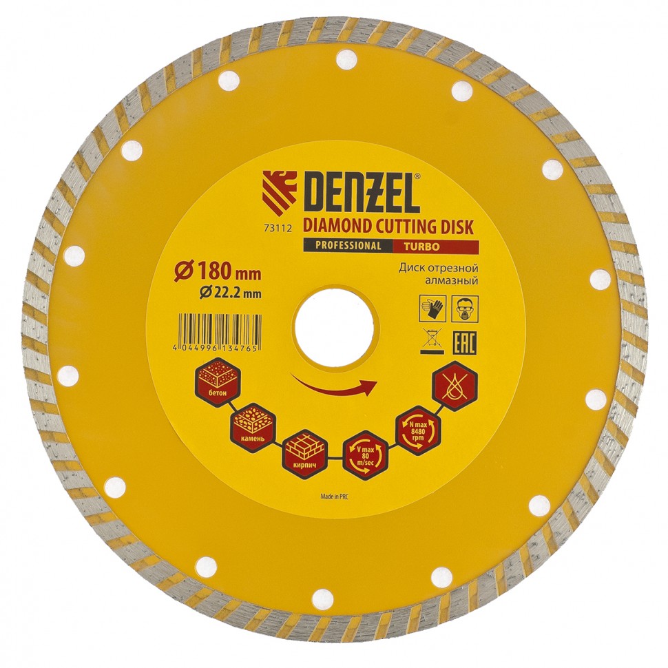 Алмазный диск 180х22,2х2,8мм DENZEL TURBO сухой рез, камень, кирпич, армированный бетон 73112