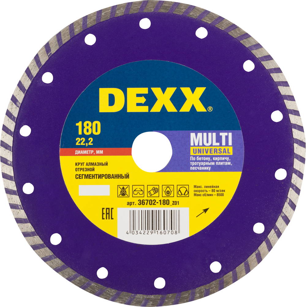 Алмазный диск 180х22,2мм / S-7мм DEXX "ТУРБО" сегментированный, для УШМ 36702-180_z01