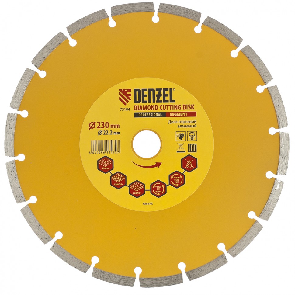 Алмазный диск 230х22,2х2,0мм DENZEL сегмент, для резки камня, кирпича, бетона. 73104