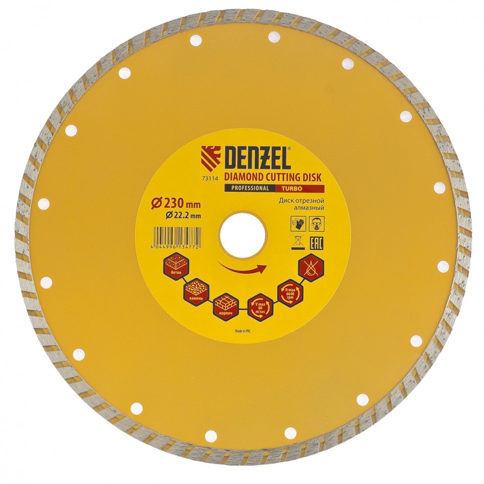 Алмазный диск 230х22,2х3,2мм DENZEL TURBO сухой рез, камень, кирпич, армированный бетон 73114