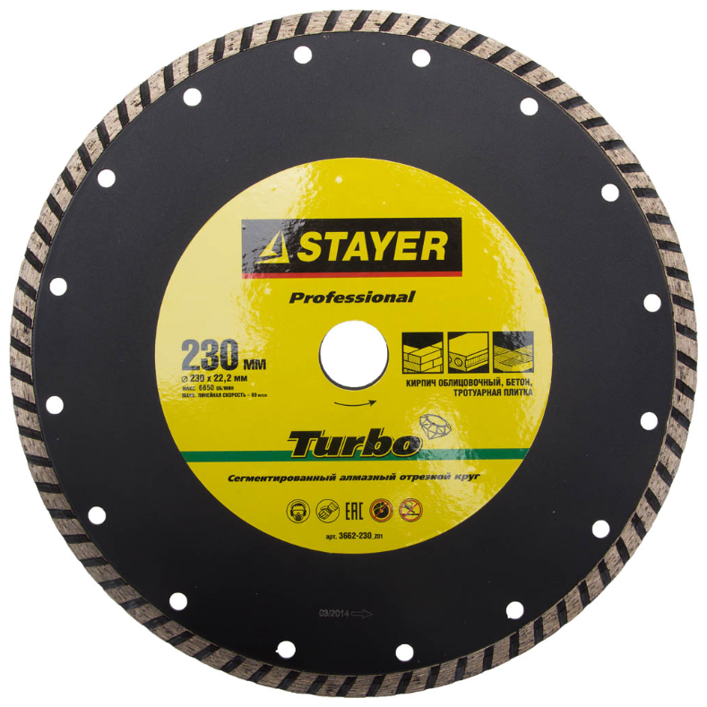 Алмазный диск 230х22,2мм STAYER "PROFESSIONAL" TURBO, сегментированный, сухая и влажная резка 3662-230_z01