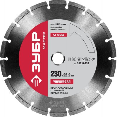 Алмазный диск 230х22,2мм ЗУБР "МАСТЕР" сегментный, сухая и влажная резка 36610-230