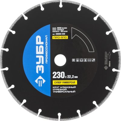 Алмазный диск 230х22,2мм ЗУБР "ПРОФЕССИОНАЛ" сегментный универсальный, вакуумная пайка