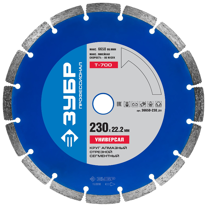 Алмазный диск 230х22,2мм ЗУБР "ПРОФИ" УНИВЕРСАЛ сегментный, сухая резка 36650-230_z01