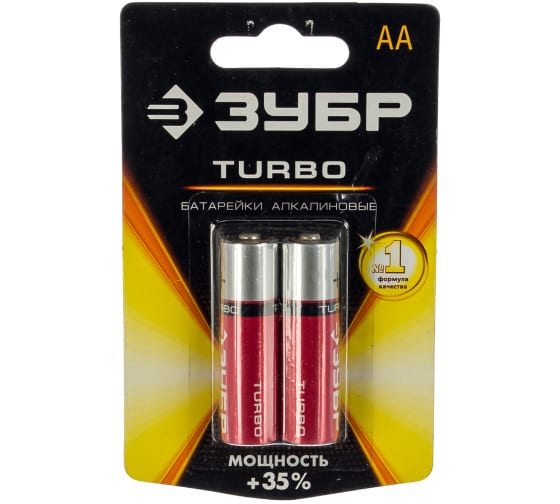 Батарейка Зубр "TURBO" щелочная (алкалиновая), тип AA, 1,5В, 2шт на карточке