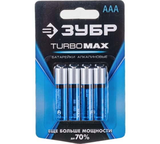 Батарейка ЗУБР "МАКС-ПЛЮС" щелочная (алкалиновая), тип AAA, 1,5В, 4шт на карточке