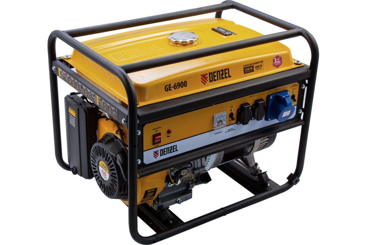 Бензиновый генератор DENZEL GE 6900 5,5 кВт, 220В 50Гц, 25 л, ручной старт 94637