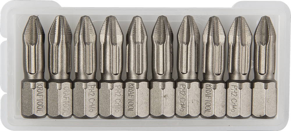 Биты KRAFTOOL "ЕХPERT" торсионные кованые, обточенные, Cr-Mo сталь, тип хвостовика C 1/4", PH2, 25мм, 10шт