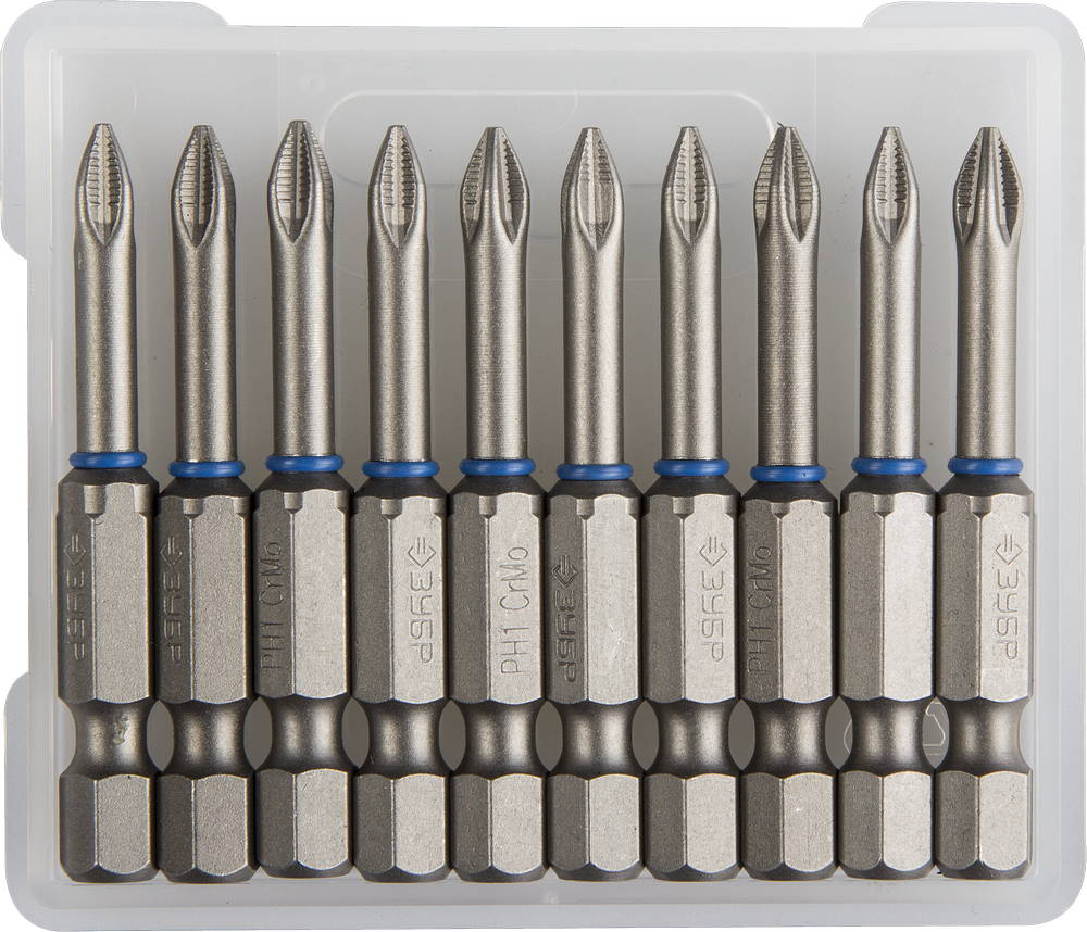 Биты ЗУБР "ЭКСПЕРТ" торсионные кованые, обточенные, хромомолибденовая сталь, тип хвостовика E 1/4", PH1, 50мм, 10шт