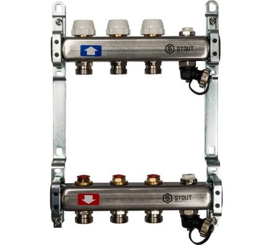 SMS-0932-000003 STOUT Коллектор из нержавеющей стали без расходомеров, с клапаном вып. воздуха и сливом 3 вых