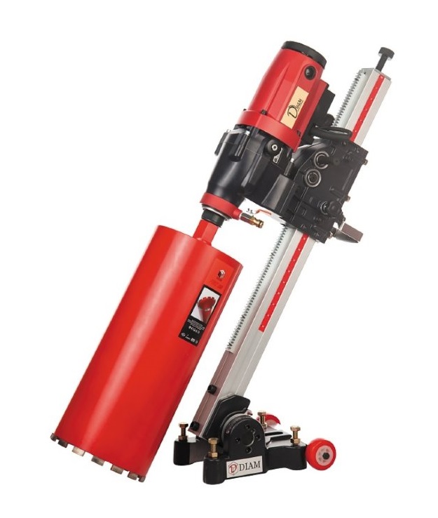 Профессиональная машина алмазного бурения DIAM CSN-254N используется для сверления отверстий под прямым углом в бетоне, железобетоне и кирпиче. Оборудована двигателем мощностью 2,4 кВт. Диаметр сверления от 12 до 250 мм. Установка применяется для высверливания идеально ровных отверстий при электромонтажных работах, прокладке сантехнических и вентиляционных труб, взятия проб грунта. Глубина бурения регулируется при помощи линейки расположенной на станине. Установка оборудована электронной защитой от перегрева.