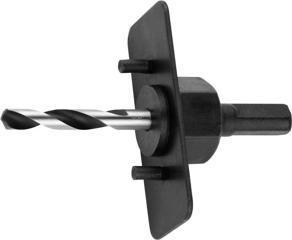 Державка ЗУБР "ЭКСПЕРТ" с центрирующим сверлом и опорным основанием для коронок по дереву, 32-127мм