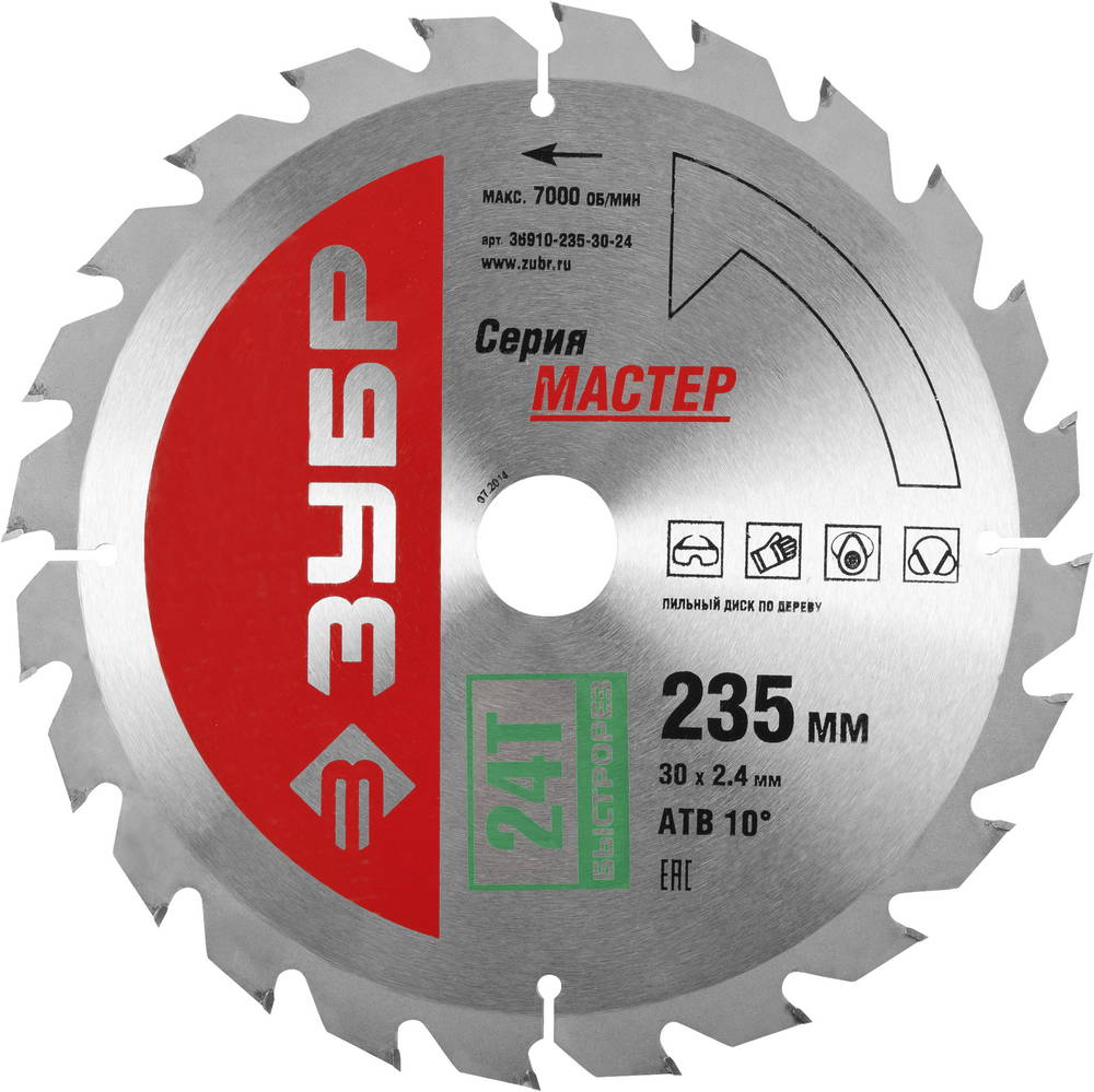 Диск пильный ЗУБР "МАСТЕР" "Быстрый рез" по дереву, 235x30, 24Т 36910-235-30-24