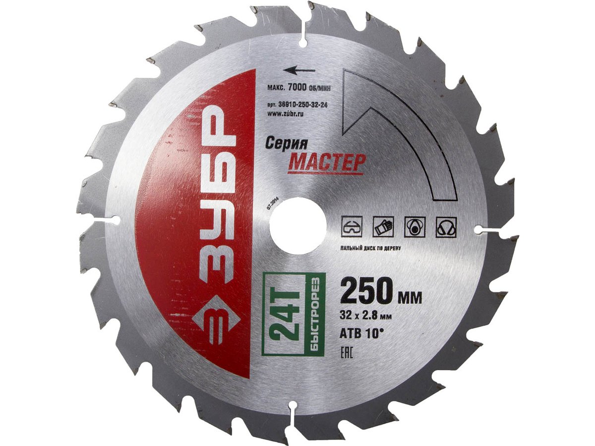 Диск пильный ЗУБР "МАСТЕР" "Быстрый рез" по дереву, 250x32, 24Т 36910-250-32-24