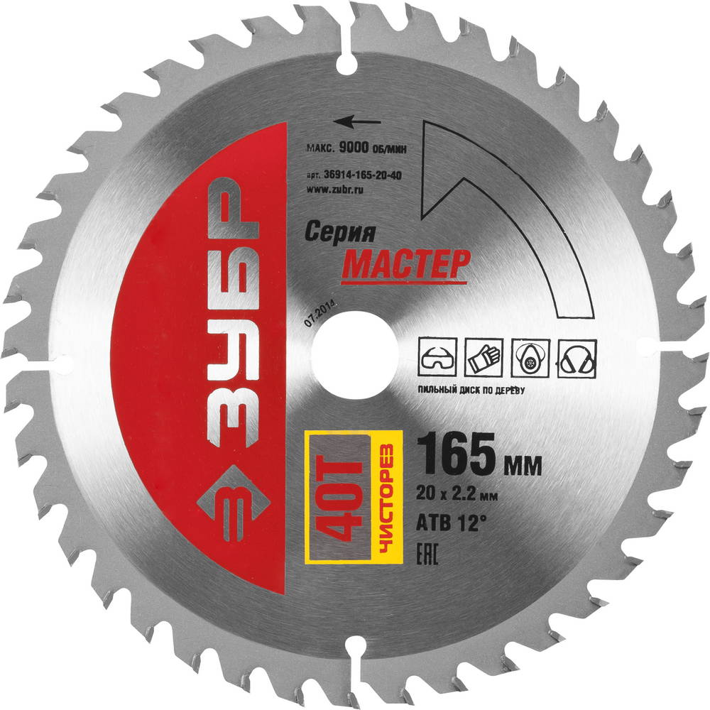 Диск пильный ЗУБР "МАСТЕР" "Чистый рез" по дереву, 165x20, 40T 36914-165-20-40