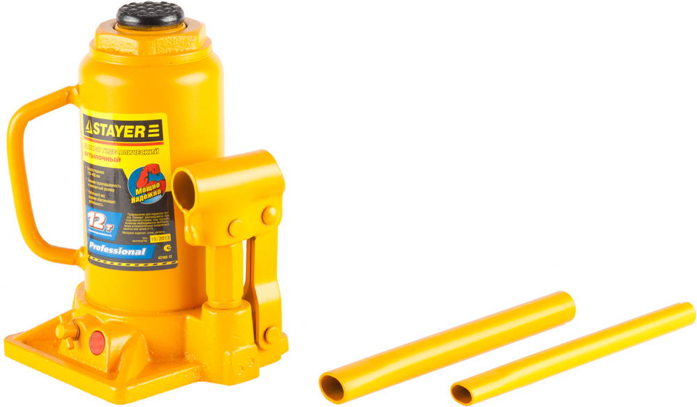 Домкрат STAYER "PROFI" гидравлический бутылочный, 12т, 210-400мм 43160-12