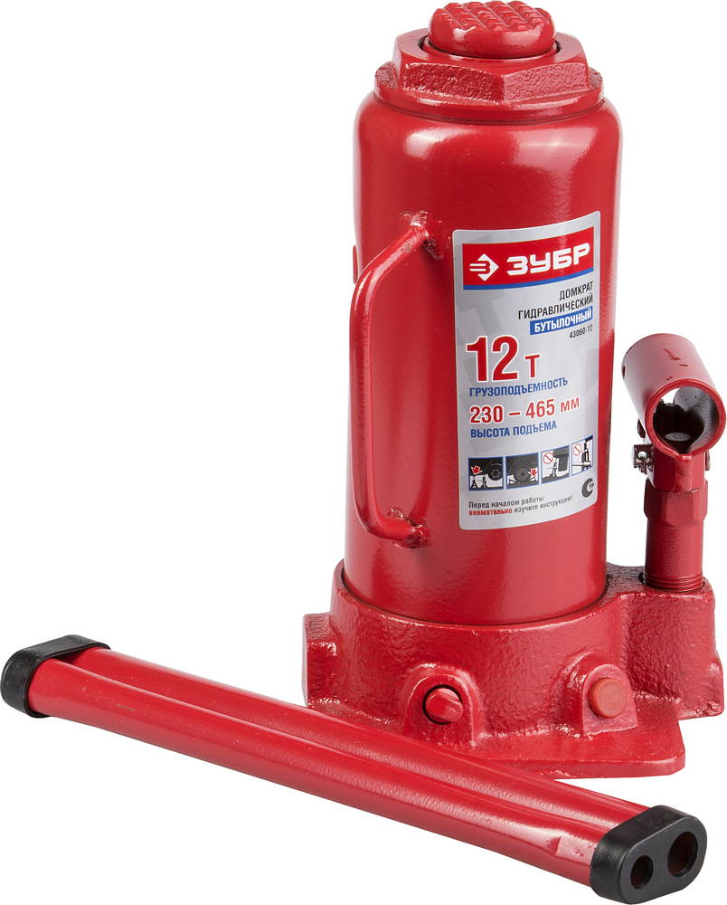 Домкрат ЗУБР "ЭКСПЕРТ" гидравлический бутылочный, 12т, 230-465мм 43060-12