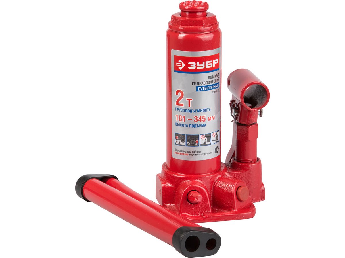 Домкрат ЗУБР "ЭКСПЕРТ" гидравлический бутылочный, 2т, 181-345мм