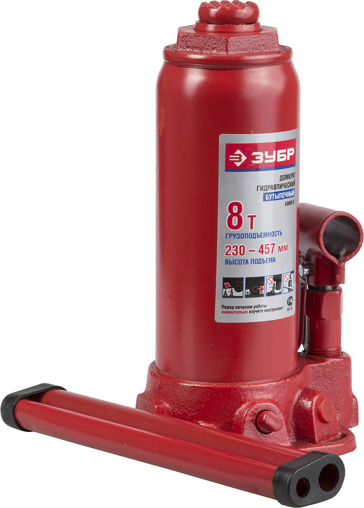 Домкрат ЗУБР "ЭКСПЕРТ" гидравлический бутылочный, 8т, 230-457мм 43060-8