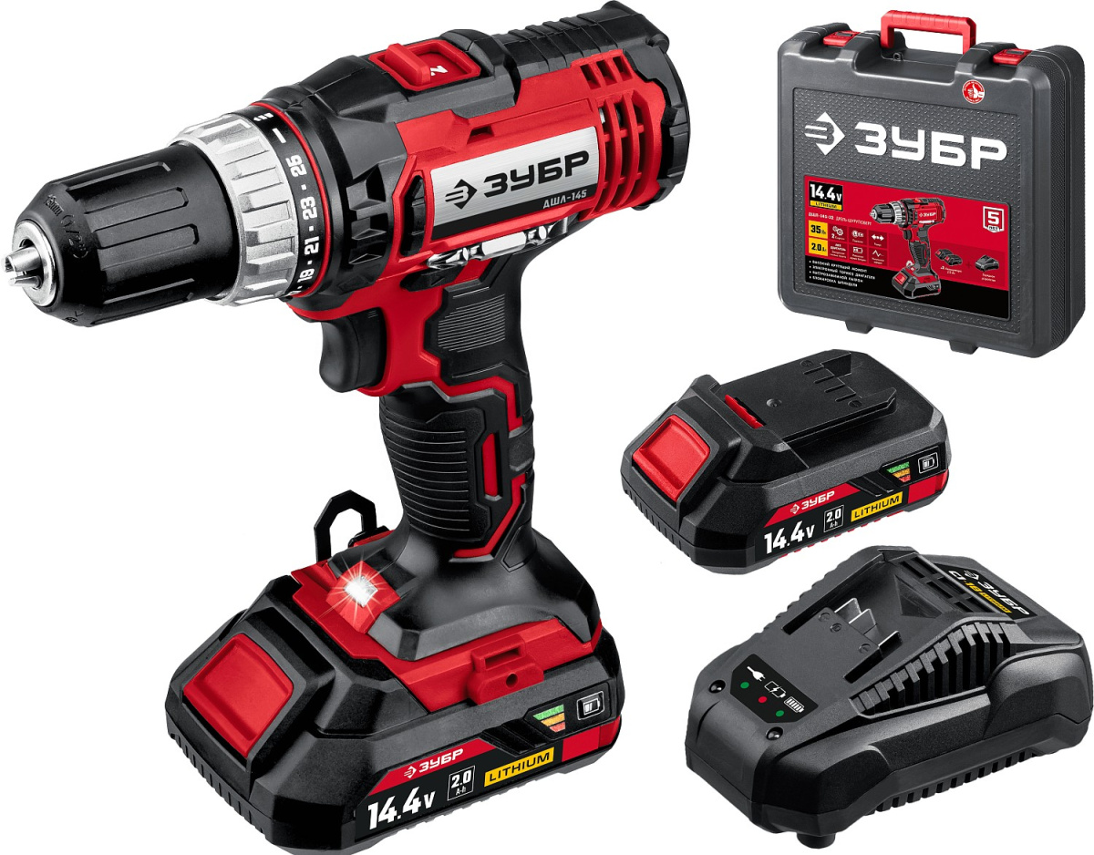 Дрель-шуруповерт ЗУБР 14.4В, 2 АКБ (2Ач), в кейсе