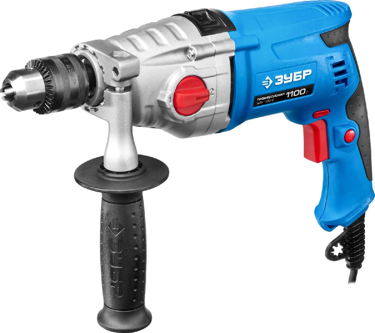 Дрель ЗУБР "ПРОФЕССИОНАЛ" ударная, 2 скоростная, мет корпус редуктора,патрон 13мм, реверс, 1100Вт. /ЗДУ-1100-2 ЭРММ2