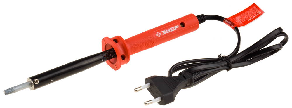 Электропаяльник ЗУБР "МАСТЕР" с пластиковой рукояткой и долговечным жалом, форма клин, 60Вт