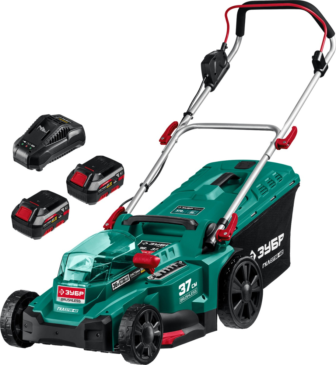 Газонокосилка ЗУБР С1-18, 36 В, 37 см, 2х18 В АКБ (4 А·ч), бесщеточная