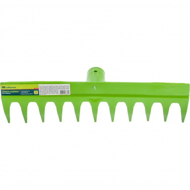 Грабли пластиковые, 380 мм, 11 прямых зубьев, усиленные, без черенка, Россия Сибртех