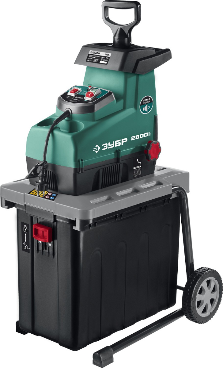 Измельчитель ЗУБР бесшумный электрический, р/с 44мм, контейнер 60л, 2800Вт
