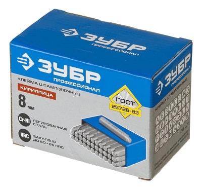 Клейма ЗУБР буквенные кириллица, шрифт 8мм