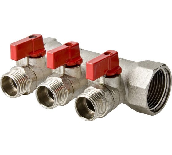 Коллектор 1'х3 выхода Евроконус 3/4 с отсекающими кранами (VTc.580.NE.0603)