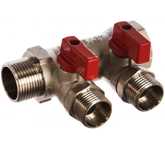 Коллектор 3/4' х 2 выхода 1/2' НР с отсекающими кранами (VTc.580.N.0502) VTc.580.N.0502