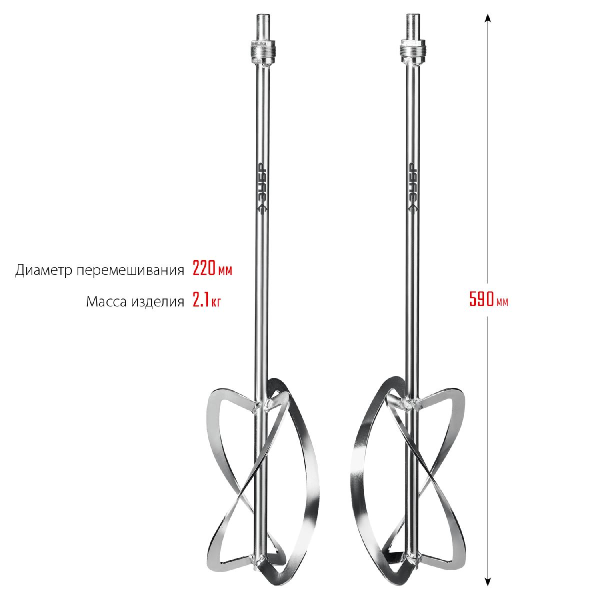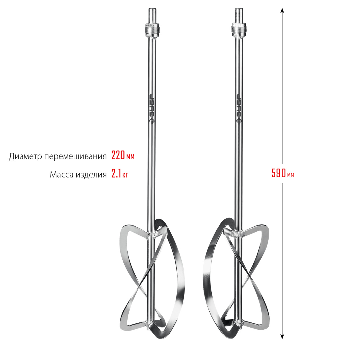 Комплект насадок-миксеров ″сверху-вниз″ для легких растворов ЗУБР, 2 шт d 220 мм, М27