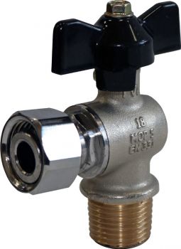 Кран шаровой с накидной гайкой угловой, НР/накидная гайка, ручка бабочка 1/2x1/2