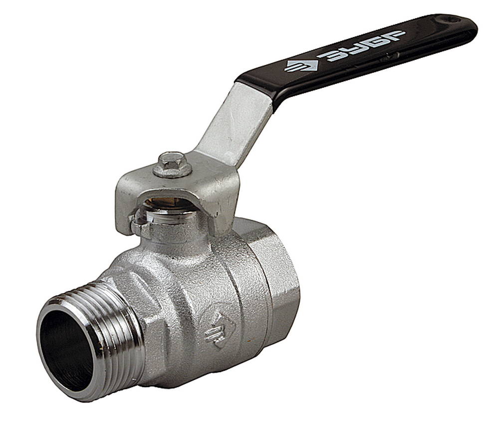Кран шаровой ЗУБР полнопроходной "мама-папа", ручка, хромиров латунь, 1" 4-51321-C-1
