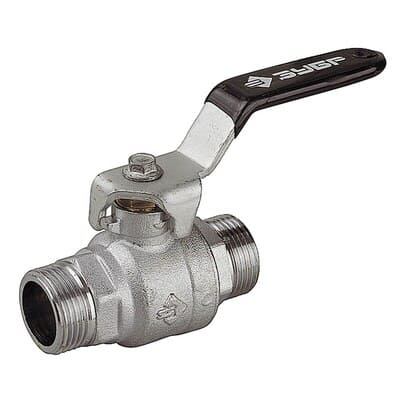 Кран шаровой ЗУБР полнопроходной "папа-папа", ручка, хромиров латунь, 1/2"