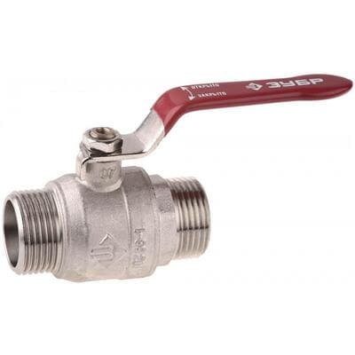 Кран ЗУБР шаровой 3/4" полнопроходной "папа-папа", ручка, никелированная латунь