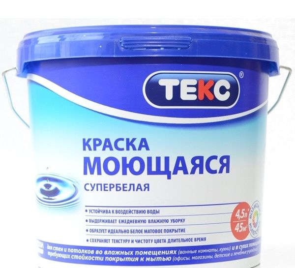 Краска в/д, интерьерная Текс, супербелая, профи, 9 л/13,5кг.