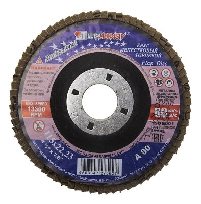 Круг лепестковый торцевой абразивный "Луга" для шлифования, 115 х 22,23мм, зерно P80