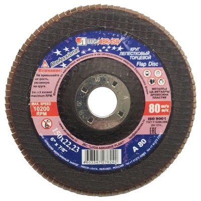 Круг лепестковый торцевой абразивный "Луга" для шлифования, 150 х 22,23мм, зерно P80