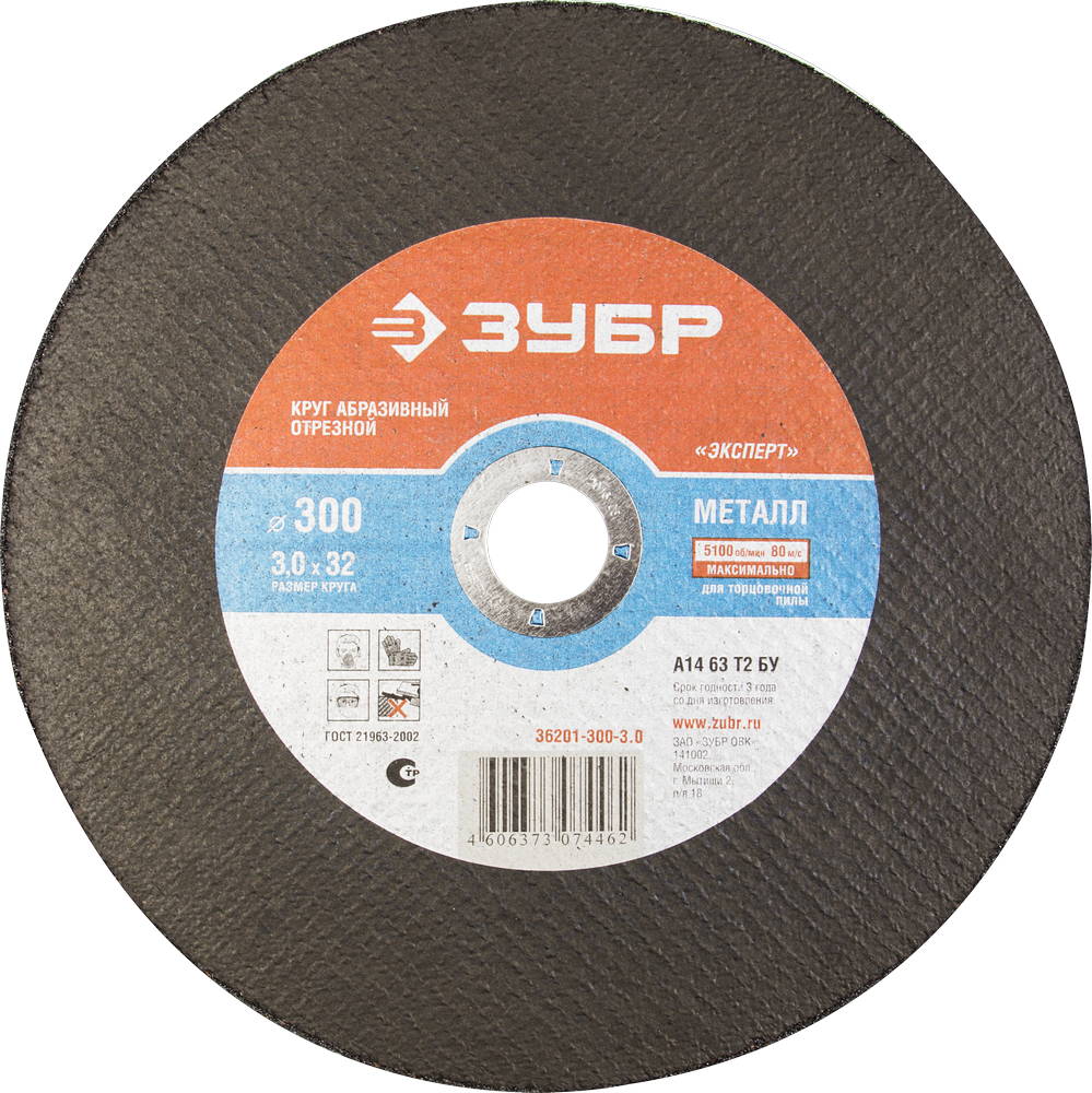 Круг отрезной абразивный ЗУБР по металлу, для торцовочной пилы, 300х3,0х32мм 36201-300-3.0